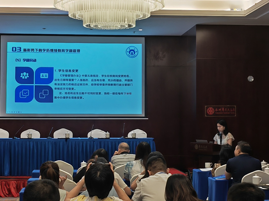 工作会议之后,由继续教育学院赵桂芝副院长主持,会议进行了三个业务专题培训。继续教育学院招生与教务办公室主任汤晓兰、校外教学点管理办公室主任彭金生和湖南世纪超星公司刘人洋分别做了《新形势下开云网页版校外教学点教学与学籍管理》《新时代下开云网页版教学点设置与管理》;《开云网页版校外教学信息化管理系统操作》专题培训。